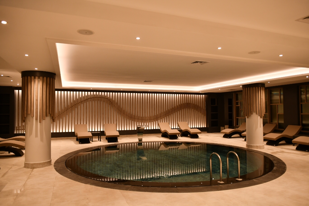 DoubleTree by Hilton Kars Sarıkamış Hotel’de yer alan kapalı havuz, misafirlere her mevsim yüzme keyfi ve dinlenme imkânı sunuyor. Hem yetişkinler hem de çocuklar için güvenli ve konforlu bir alan sağlayan havuz, tatilinizi hem eğlenceli hem de rahatlatıcı bir deneyime dönüştürüyor.