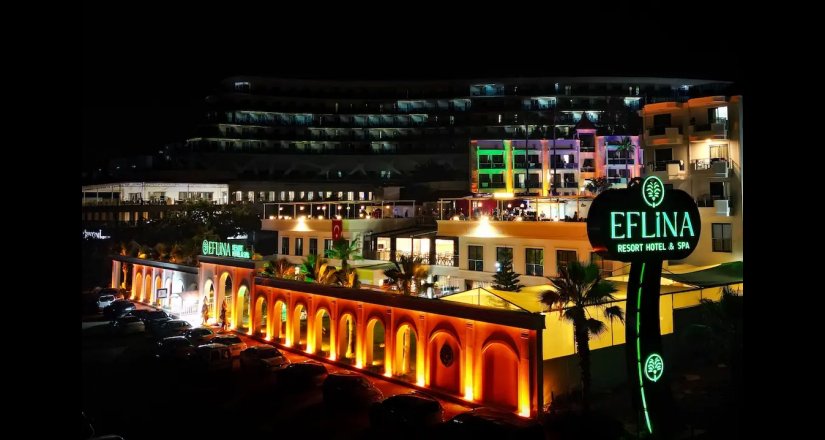 Eflina Resort Hotel & Spa, ailelere özel bir tatil deneyimi sunan modern bir tesistir. 2025 yılında kapılarını misafirlerine açan otel, denize sıfır konumu, alkolsüz her şey dahil konsepti ve muhafazakâr tatil anlayışıyla dikkat çekmektedir. Standart Deniz Manzaralı Oda, Standart Havuz Manzaralı Oda, Aile Odası ve Aile Süit seçenekleriyle konforu ön planda tutan Eflina Resort Hotel & Spa, misafirlerine huzur dolu bir konaklama vaat ediyor.